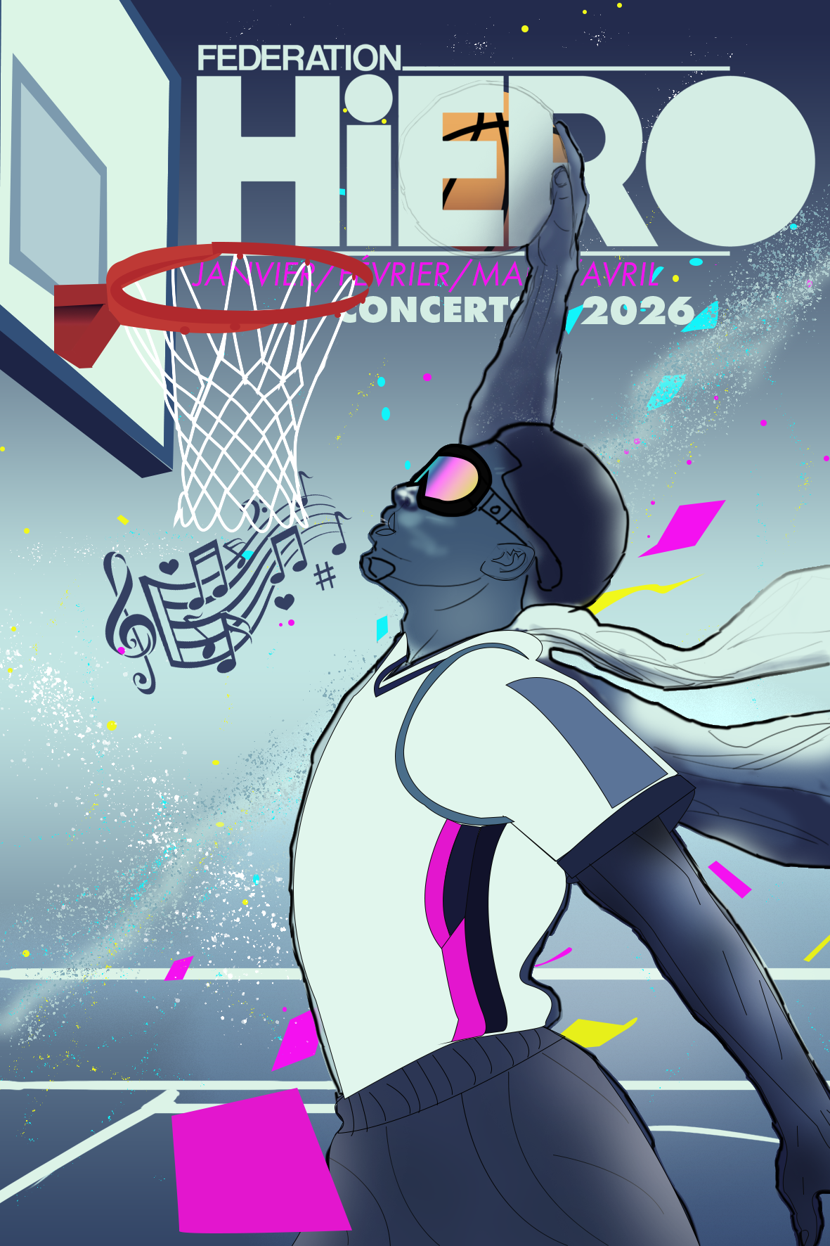 Le brief : concevoir une série de trois illustrations originales sous Photoshop pour la Fédération Hiero, une structure promouvant la culture urbaine à travers musique et sport.
